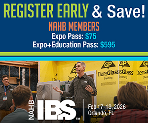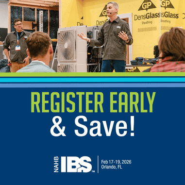Attend the premier event for the residential construction industry, the 2026 Builders’ Show, February 17 – 19 in Orlando. See new products, learn, discover the latest trends, connect with peers, support the industry and so much more. Claim your NAHB Member savings on registration. Learn more.