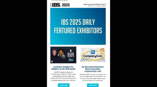 In 2025, IBS exhibitors who took advantage of IBS opportunities to help promote their presence at the Builders' Show averaged 210% MORE leads than companies that did not.